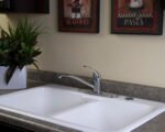 - Professionally designed kitchens include custom cabinets, generous counter space, new black appliances, double porcelain sinks, etc…