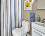 • Contemporary faux wood VCT flooring with new carpets in bedrooms